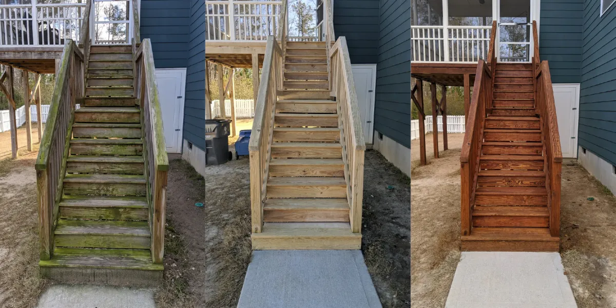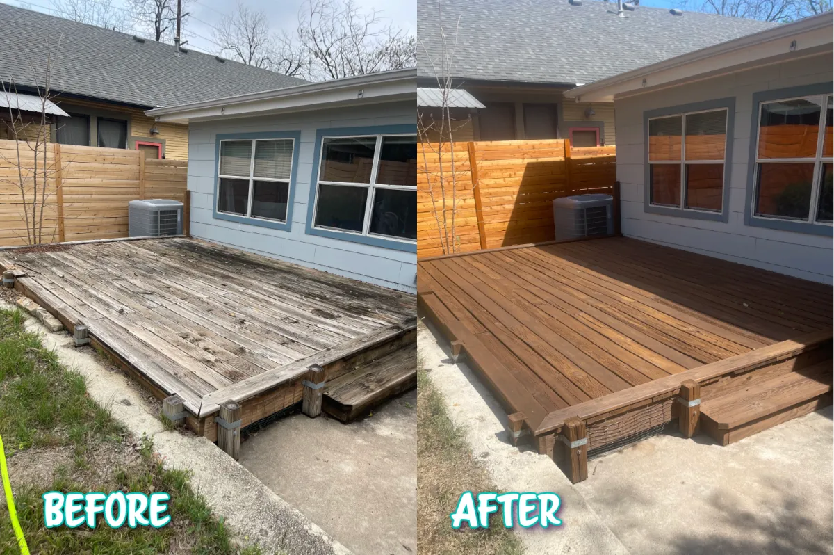 We also work on decks, pergolas, and other exterior wood surfaces using the same approach.